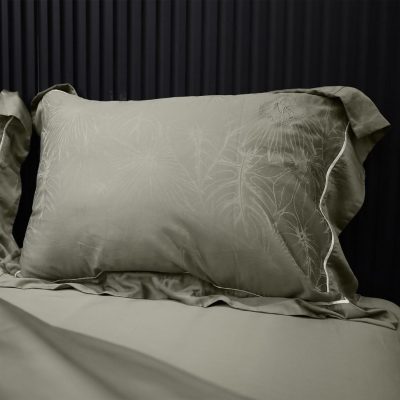 Set ga bộ được hoàn thiện dựa trên chất liệu vải Tencel thượng hạng có nguồn gốc từ thiên nhiên, là chất liệu được đánh giá cao trong nhiều năm trở lại đây vì bề mặt vải bóng bẩy, thấm hút tốt, đem đến cảm giác thư giãn tựa như được đắm mình trong dòng suối mát lạnh. Đồng thời chất liệu sẽ bảo vệ làn da khỏi những kích ứng, giúp làn da luôn mịn màng, khô ráo khi sử dụng.